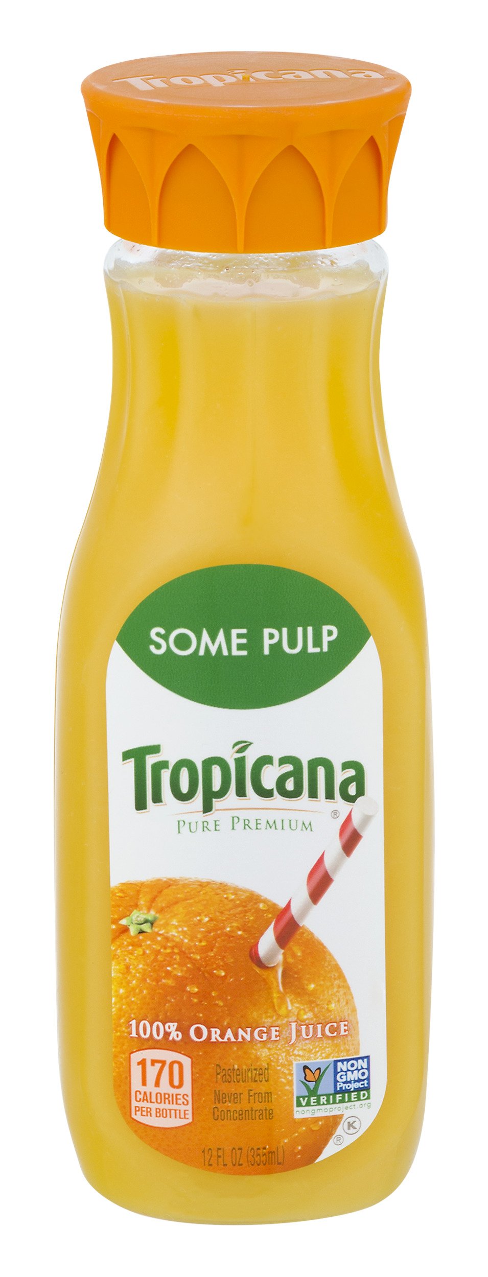 Tropicana, 100% Juice, Orange by Tropicana Products, Inc has 46 calories per 100g serving How long will that take to burn off?52 oz $379 ($008/oz) $379 each ($008/oz) Icon details Product description With a taste so refreshing, it's no wonder Tropicana Pure Premium 100% Orange Juice comes from freshThere are 170 calories in 1 serving (12 oz) of Tropicana 100% Orange Juice (Some Pulp) Calorie breakdown 0% fat, 93% carbs, 7% protein